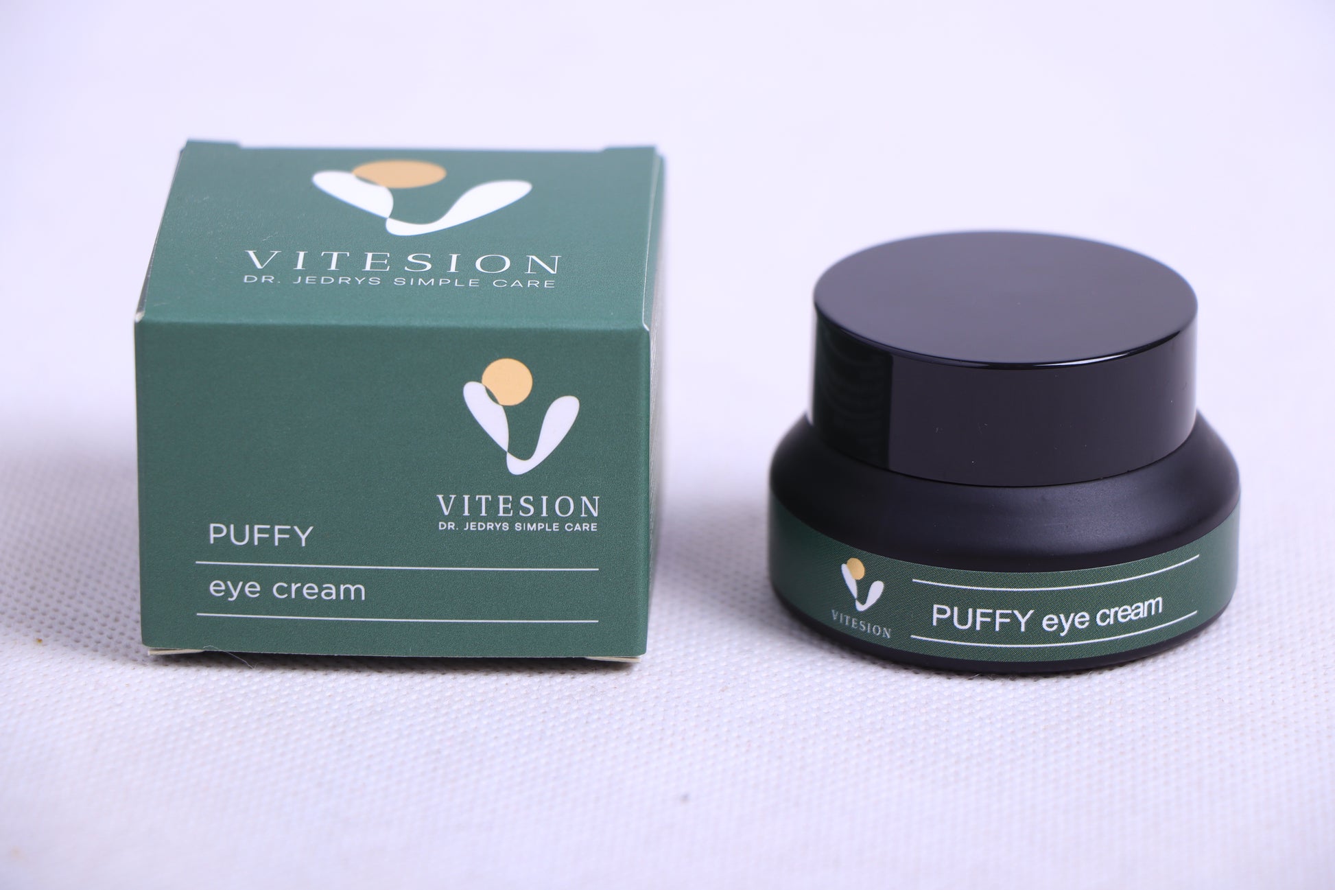 Bogaty w składniki aktywne krem do powiek PUFFY EYE CREAM marki VITESION działa kojąco, przynosi ulgę wrażliwej skórze wokół oczu. Sprawia, że skóra powiek jest ujędrniona i wygładzona. Regularne stosowanie kremu PUFFY redukuje worki i cienie pod oczami, przeciwdziała oznakom zmęczenia skóry i przywraca promienny wygląd.